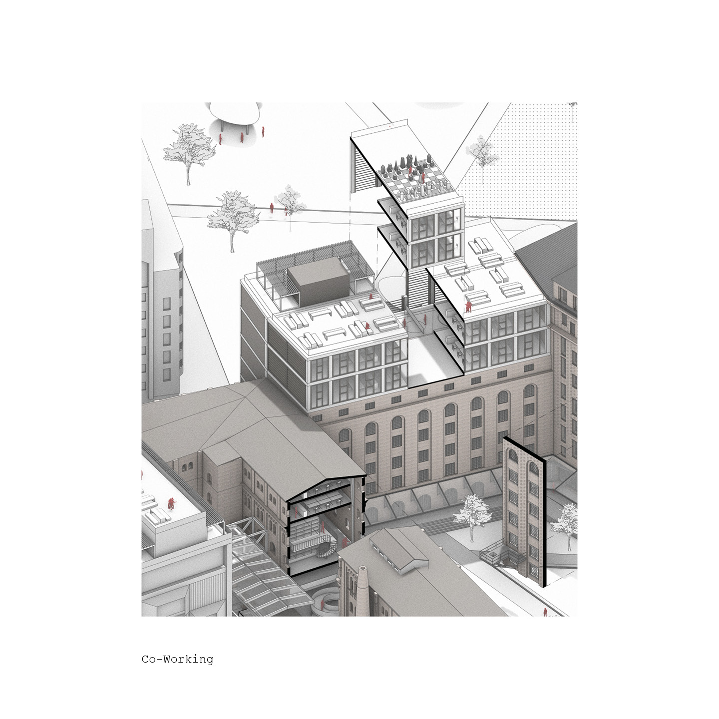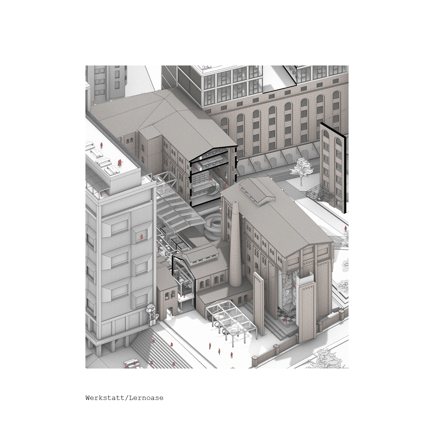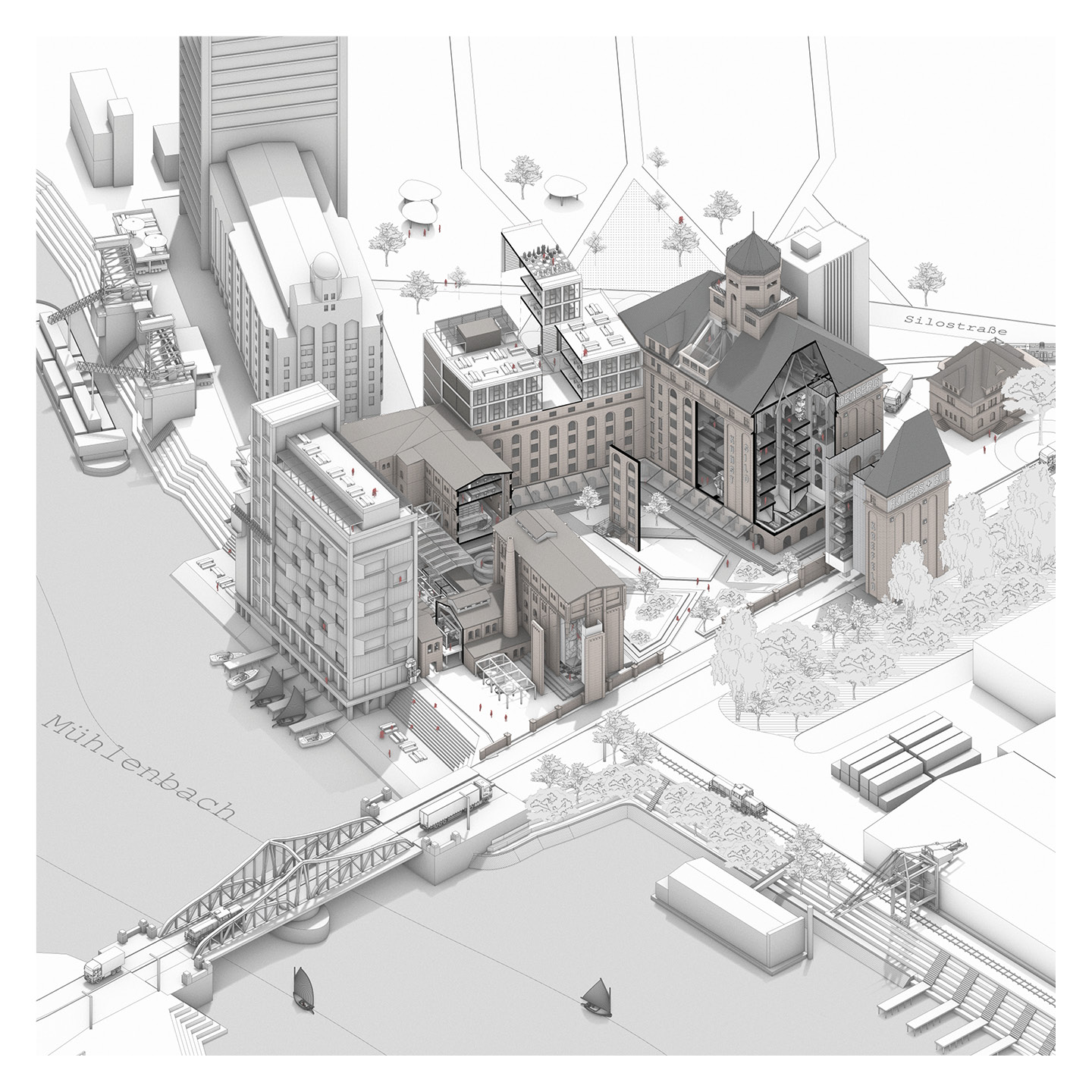 Der städtebauliche Ansatz der „SiloStadt“ geht über den eigentlichen Entwurf des Kultursilos hinaus und betrachtet den gesamten Komplex als Quartier. Daher sollen Konzepte für das gesamte Industrieareal entwickelt werden.