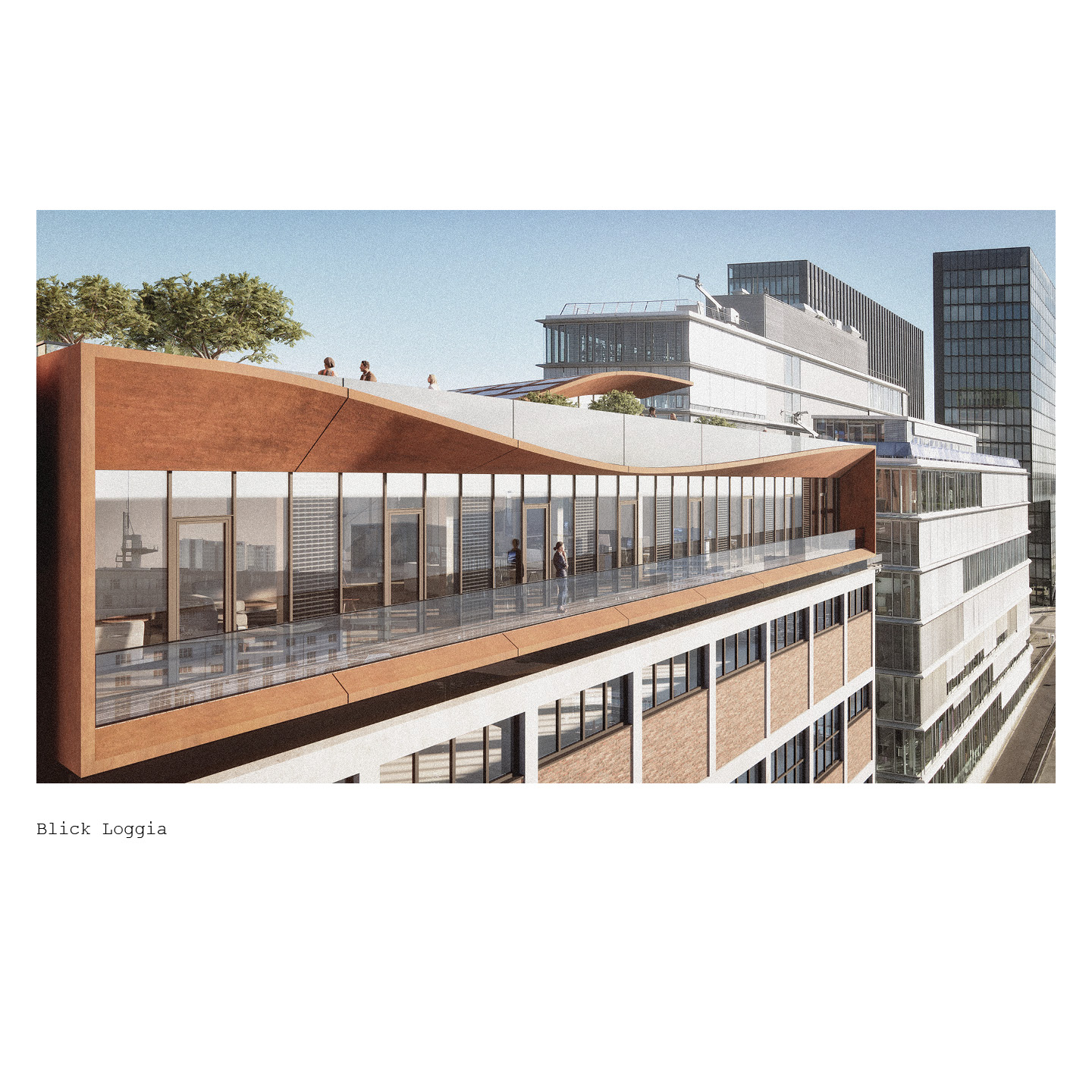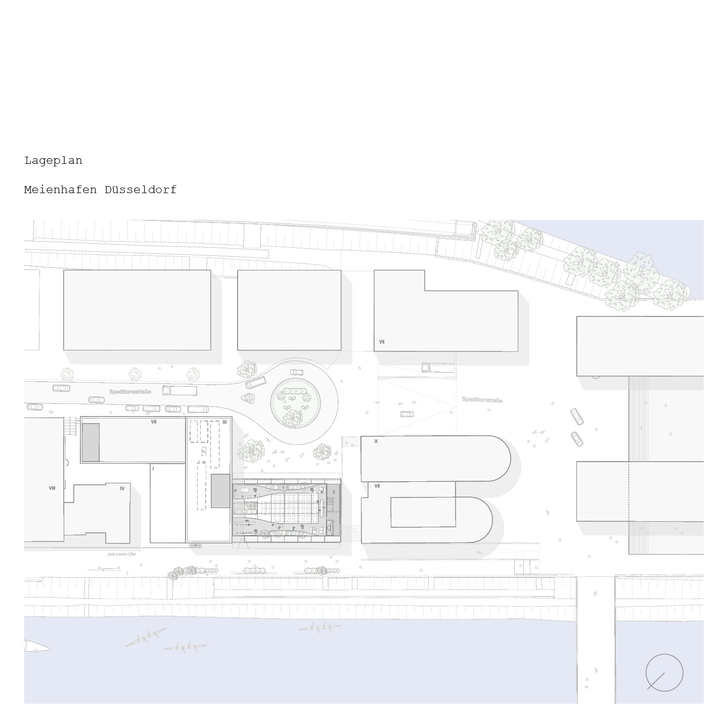 Das Gebäude in der Speditionsstraße 15A verdeutlicht in seiner Struktur noch seinen Ursprung als Lager- und Logistikgebäude im Hafen. Heute dient es als Keimzelle für innovative Start-ups und trägt so zum lebendigen Mix von Architekturen und Nutzungen im Düsseldorfer Medienhafen bei. Angesichts der robusten Tragstruktur des Gebäudes liegt es nahe, durch nachhaltige Flächenaktivierung einen attraktiven Gewerbestandort zu schaffen. Die Vorgaben des Brandschutzes erlauben jedoch nur eine zusätzliche Etage unterhalb von 22 Metern über Straßenniveau. Die Aufstockung setzt diese Vorgaben in einem modernen städtebaulichen Prototypen um. Die Erweiterung ist als nahezu autarke Infrastruktur konzipiert, die mit minimalen Eingriffen die bestehende Gebäudestruktur respektiert und das Ensemble durch ein charakteristisches Alleinstellungsmerkmal als neue “Krone”.